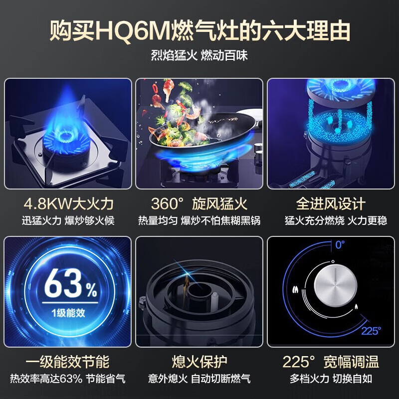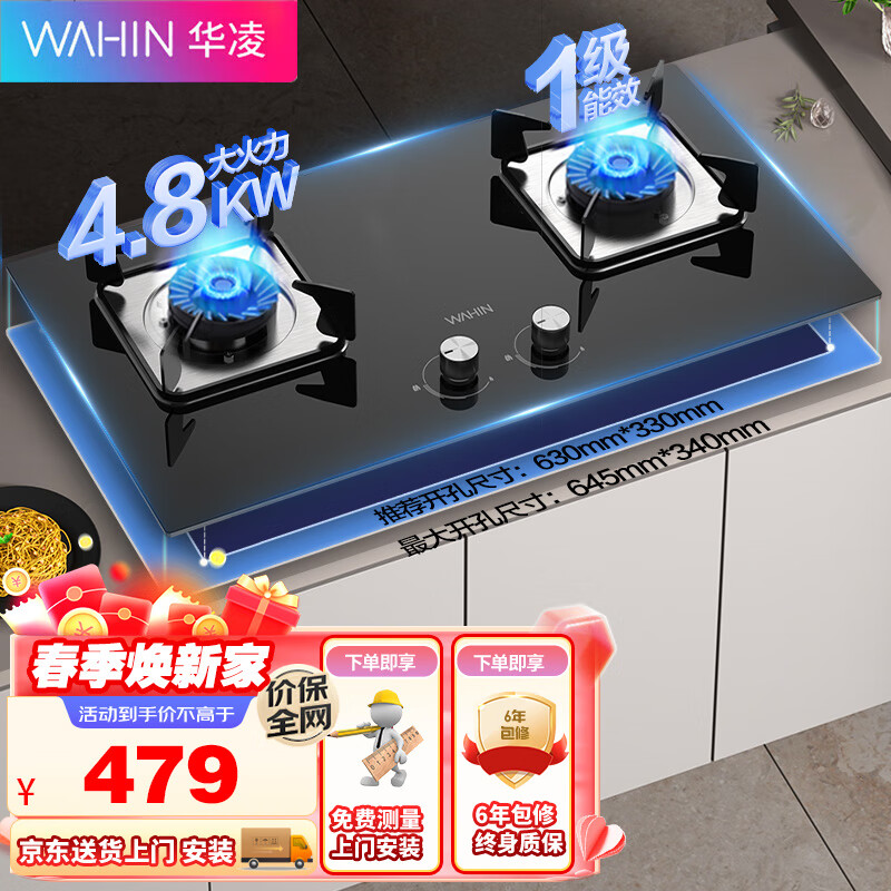 华凌美的出品 燃气灶双灶家用玻璃面板 4.8KW大火力猛火灶 一级能效台嵌两用 煤气灶灶具 天然气HQ6M价格:479.00元!