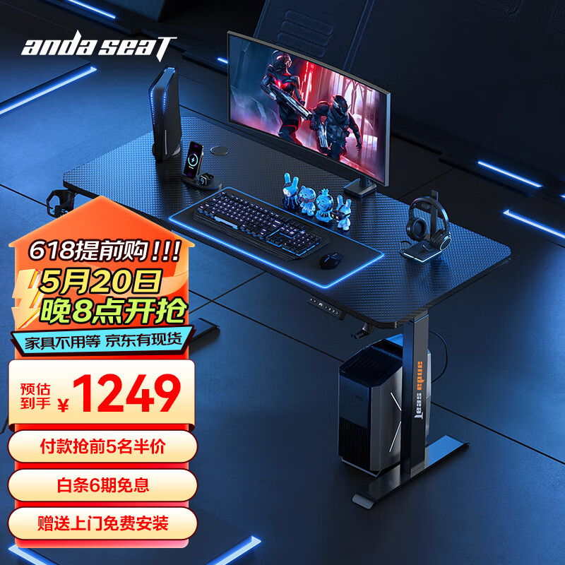 andaseaT安德斯特电脑桌电竞桌台式家用办公书桌子 未来战士电动升降1.4米价格:1899.00元!