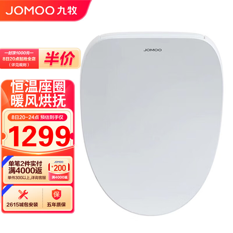 九牧 JOMOO 智能马桶盖即热式抗菌智能盖板 带烘干加热全自动洁身器ZS021价格:1649.00元!