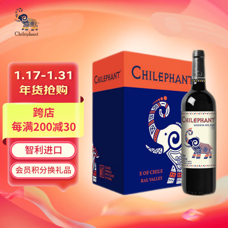 智象珍藏半干红葡萄酒750ml*6整箱 智利进口红酒价格:158.00元!