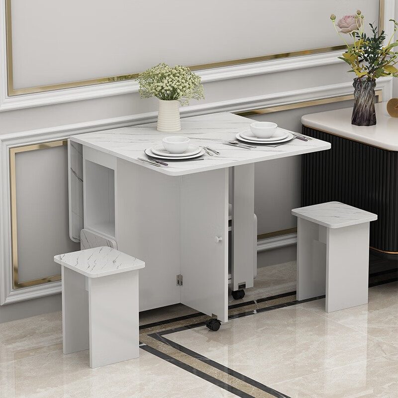 酷林KULIN折叠餐桌 家用白色桌面带储物柜可移动 小户型餐桌饭桌可伸缩价格:267.00元!