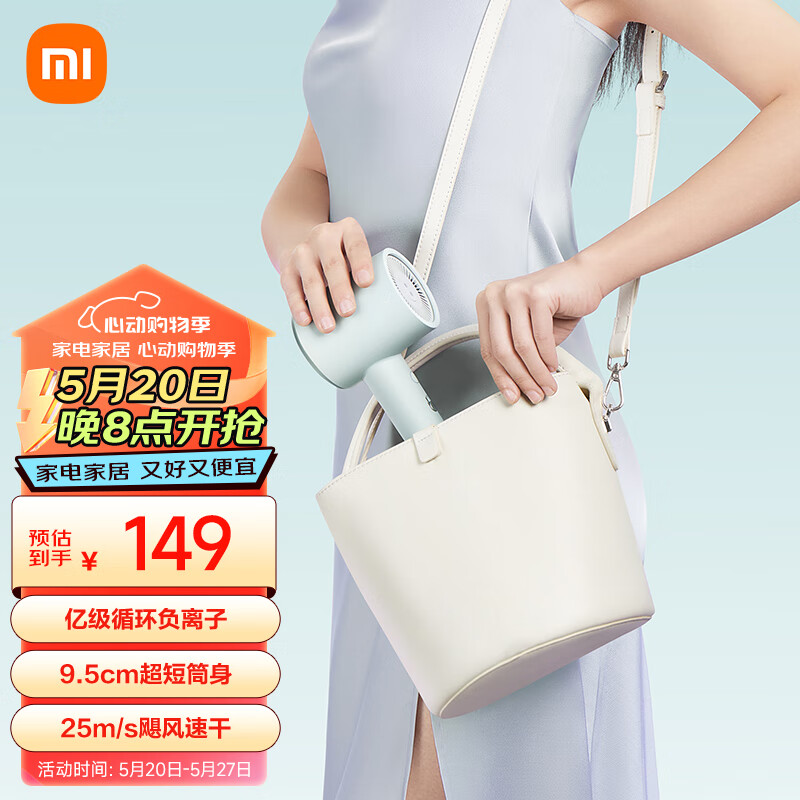米家 小米电吹风 速干吹风机 H301松霜绿 负离子护发 礼物推荐价格:149.00元!
