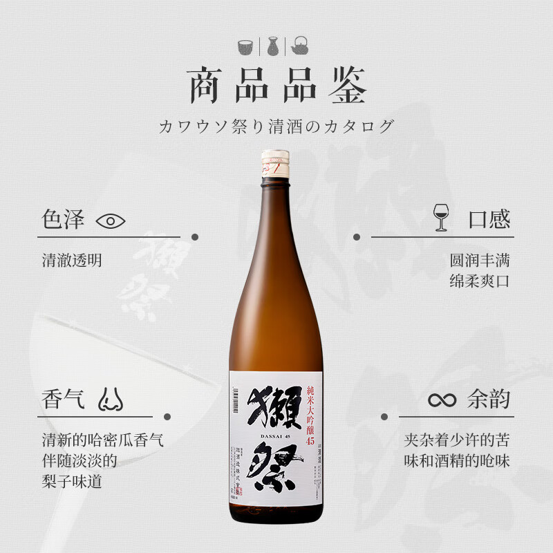 来问我獭祭1.8L/瓶外观我比较的喜欢,质量特别的好,这个商品的性价比非常高,性能很稳定,价格又合理,