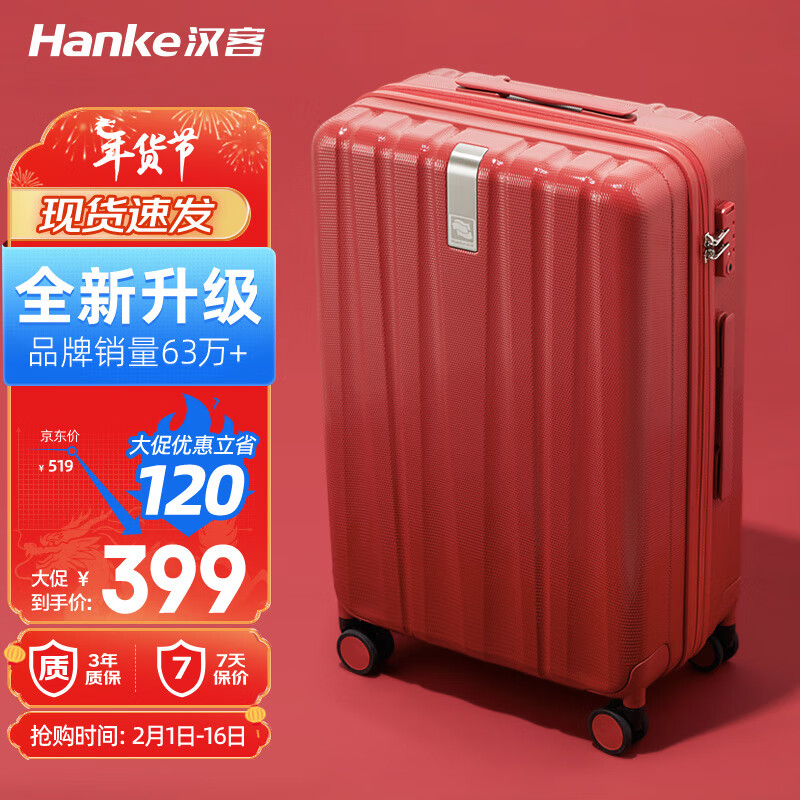 汉客结婚陪嫁行李箱拉杆箱女旅行箱60多升大容量24英寸枫叶红色再升级价格:519.00元!