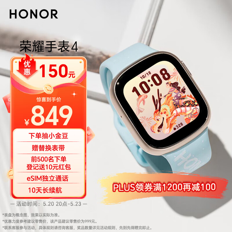 荣耀手表4 云水蓝 eSIM独立通话 10天长续航 全智能手表 男女运动手表 血氧心率监测 龙年表盘新年礼物价格:849.00元!