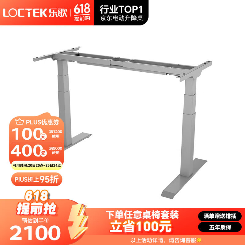 乐歌电动升降电脑桌站立办公学习桌家用写字书桌 E5-N银灰桌腿价格:2100.00元!