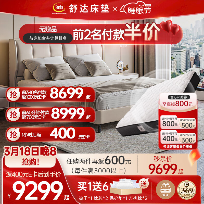 舒达(serta)致妙+星享套床(米白色)床垫1.5米*2米价格:11999.00元!