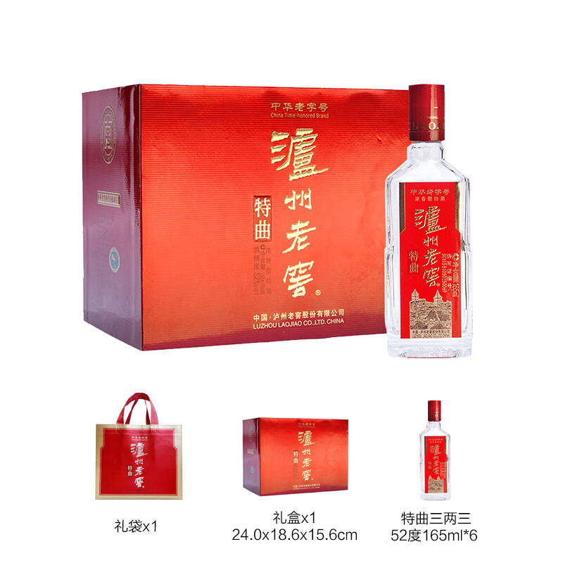 泸州老窖(LUZHOULAOJIAO) 特曲三两三 浓香型白酒 52度165ml*6瓶 整箱礼盒装 (自饮送礼)价格:539.00元!