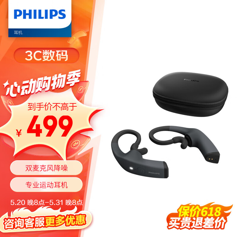 飞利浦(PHILIPS)骨传导蓝牙耳机运动无线耳机跑步骑行耳机 耳挂式 夜跑灯TAA8606BK黑色价格:499.00元!