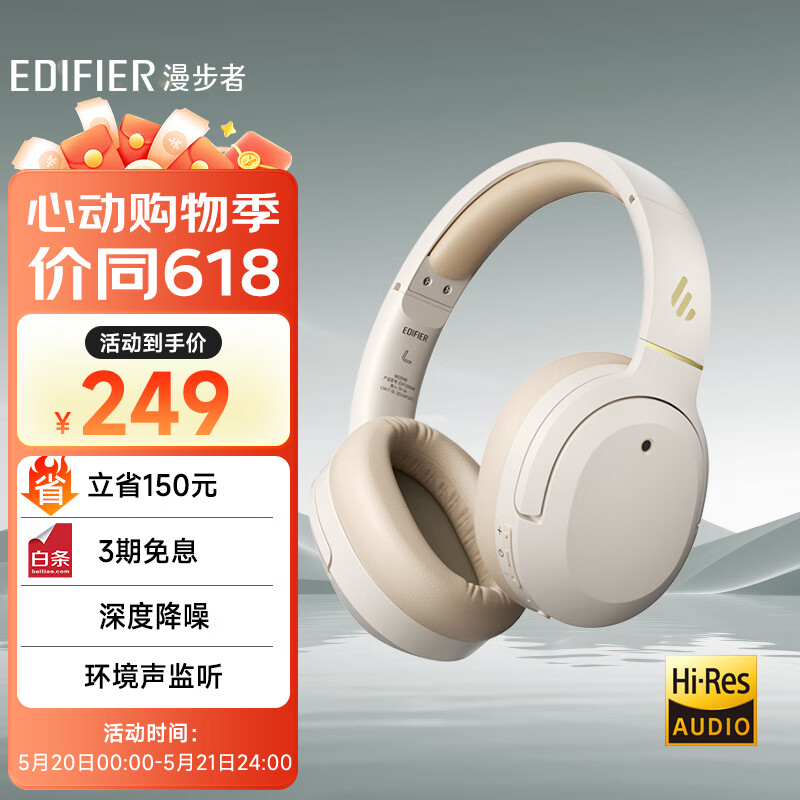 漫步者(EDIFIER)W820NB经典版 头戴蓝牙主动降噪耳机 金标认证 蓝牙5.2 手机电脑笔记本耳机 云岩白价格:249.00元!