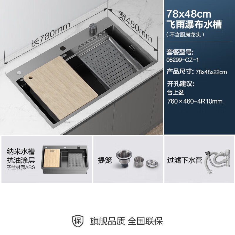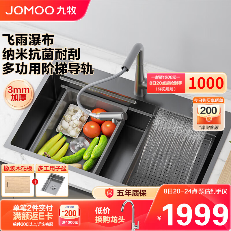 九牧(JOMOO)不锈钢抗菌耐刮飞雨瀑布水槽阶梯式厨房洗菜盆 78*48 06299-CZ-1价格:2349.00元!