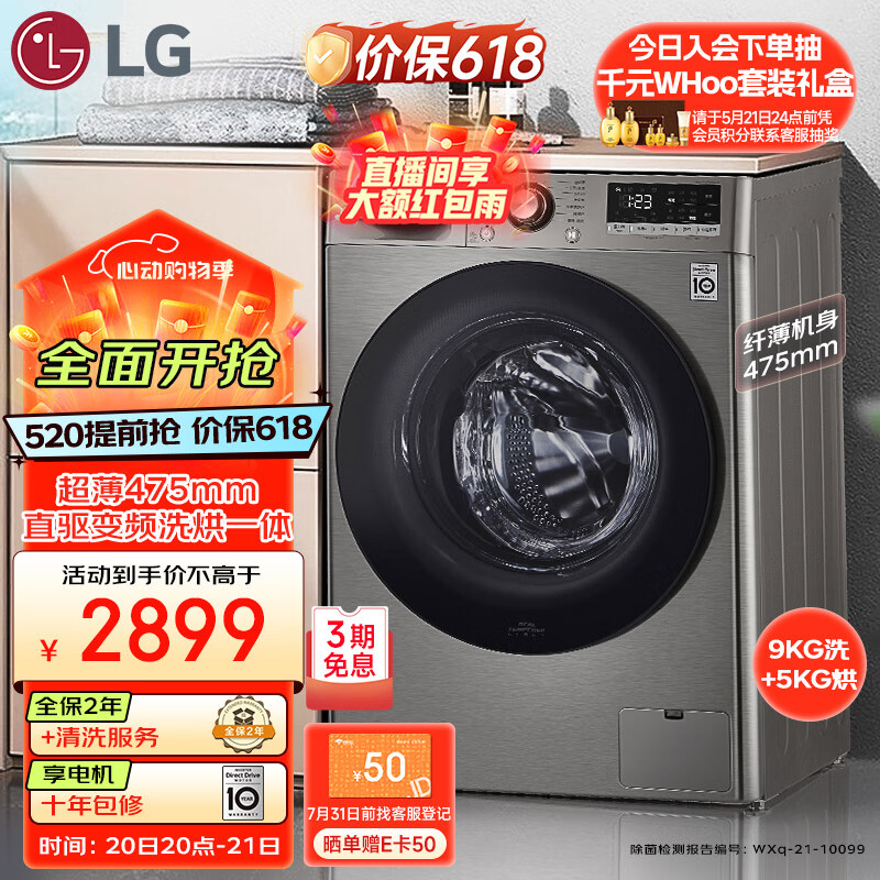 LG9KG超薄滚筒全自动洗衣机洗烘一体 家用超薄 自动烘干14分钟快洗 智能手洗 高温洗 银 FCY90M2P价格:3319.00元!