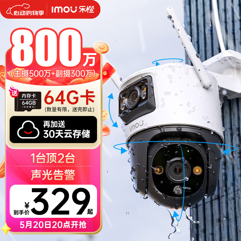 乐橙 监控摄像头 TS7双摄800万高清 商用家用 户外室外无线监控器360度无死角带夜视(双镜头双画面)价格:329.00元!