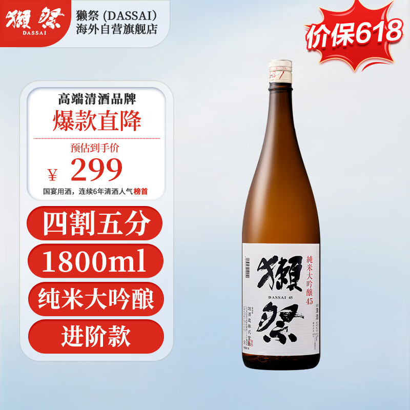 獭祭(Dassai)45四割五分日本清酒 1.8L 洋酒纯米大吟酿价格:299.00元!