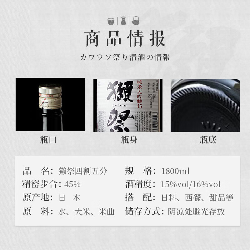 獭祭1.8L/盒配置参数: