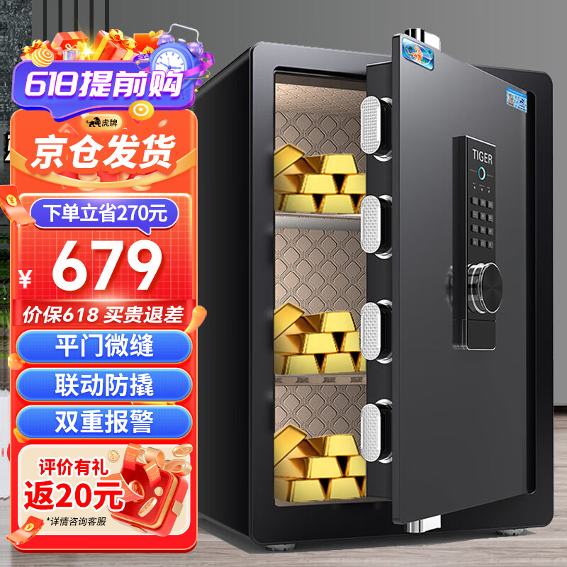 虎牌保险柜家用办公小型保险箱指纹密码全钢防盗可入墙保密保管柜博越系列60cm黑色价格:779.00元!
