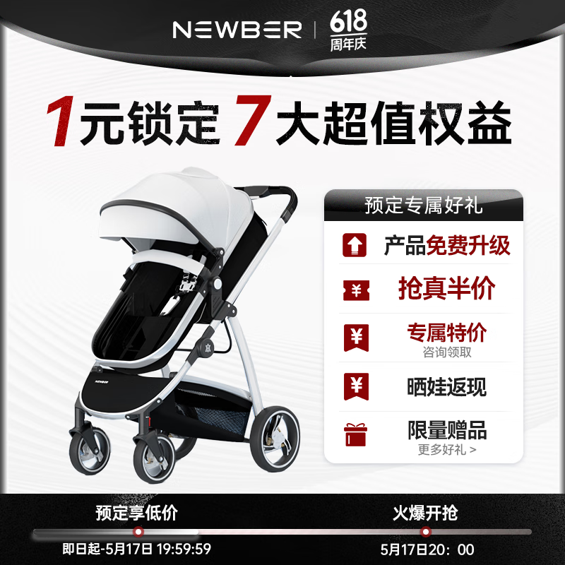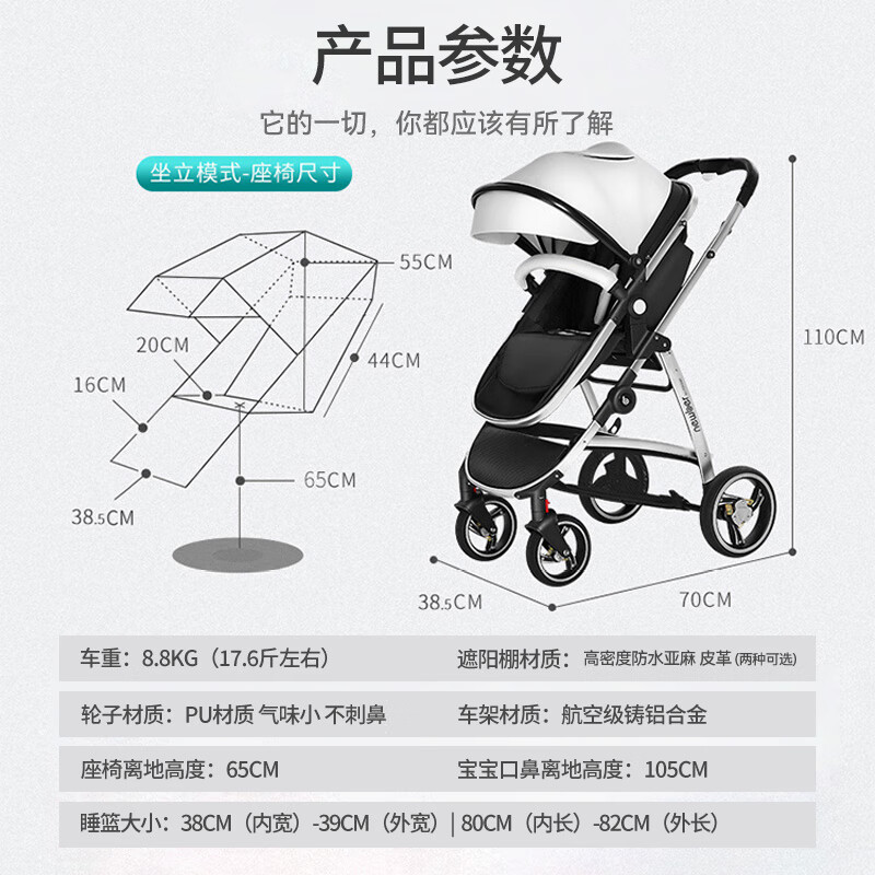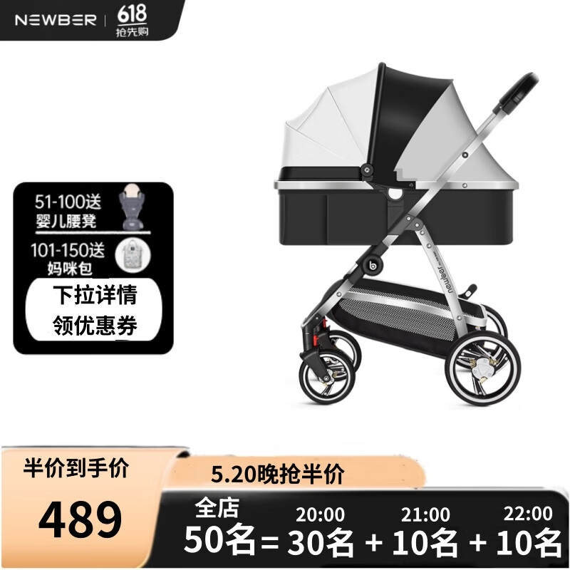 纽贝耳婴儿车婴儿推车可坐可躺双向可调0-3岁用 黑白【单车+蚊帐】价格:939.00元!