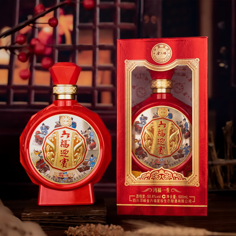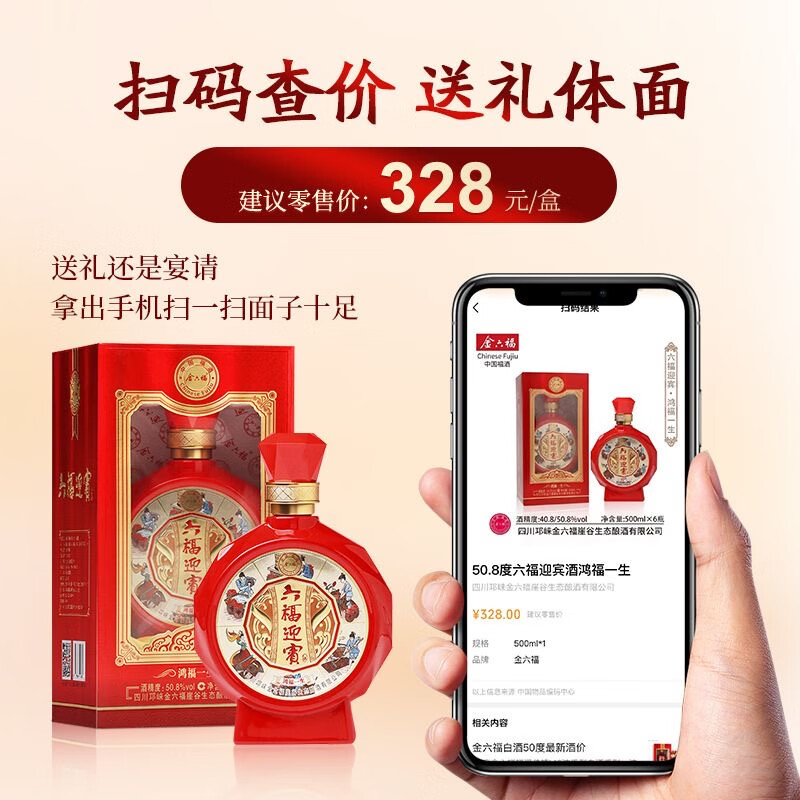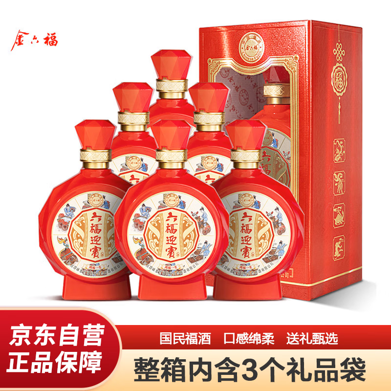 金六福 六福迎宾 鸿福一生 50.8度白酒? 500ml*6瓶整箱礼盒装 宴请送礼价格:288.00元!