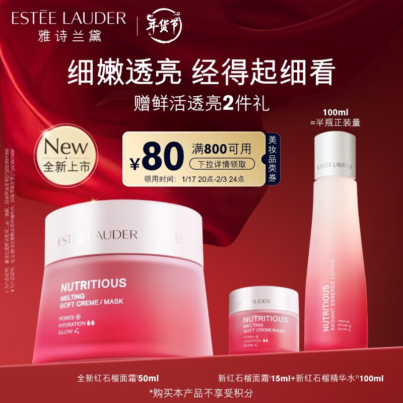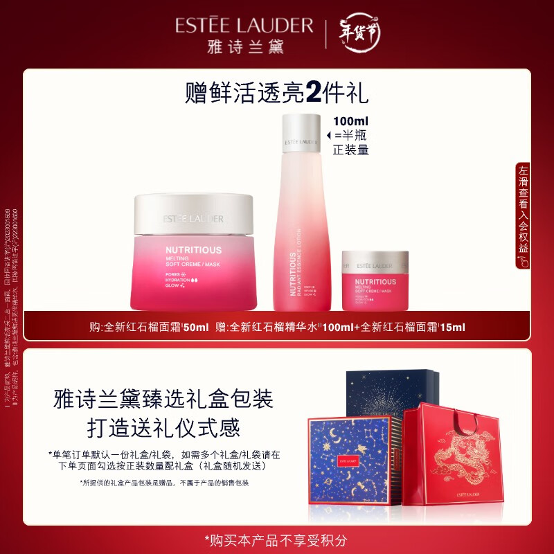 雅诗兰黛鲜活亮采二合一红石榴面霜50ml护肤套装化妆品礼盒生日礼物送女友价格:650.00元!