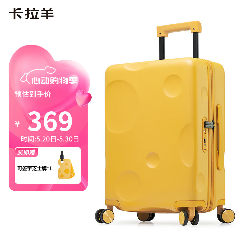 卡拉羊芝士箱防刮纯PC行李箱20英寸可登机女拉杆箱男旅行箱8109芝士黄价格:369.00元!