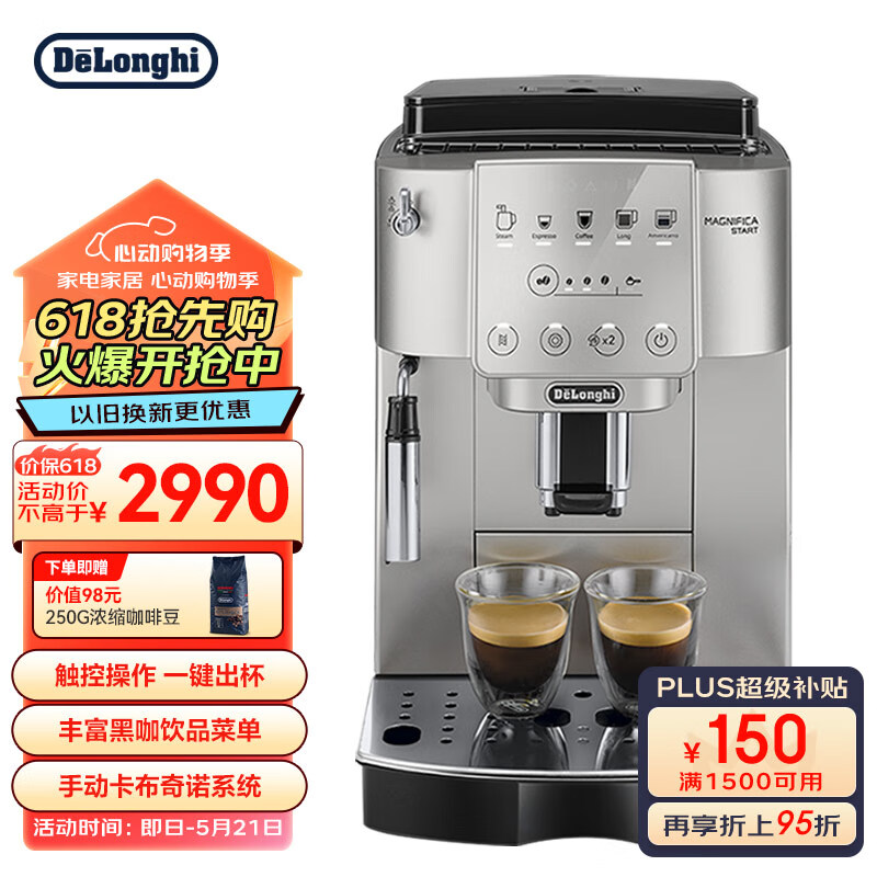 德龙(Delonghi)咖啡机 意式全自动咖啡机 家用 泵压 触控面板 一键立享 原装进口 S3 Plus价格:2987.00元!