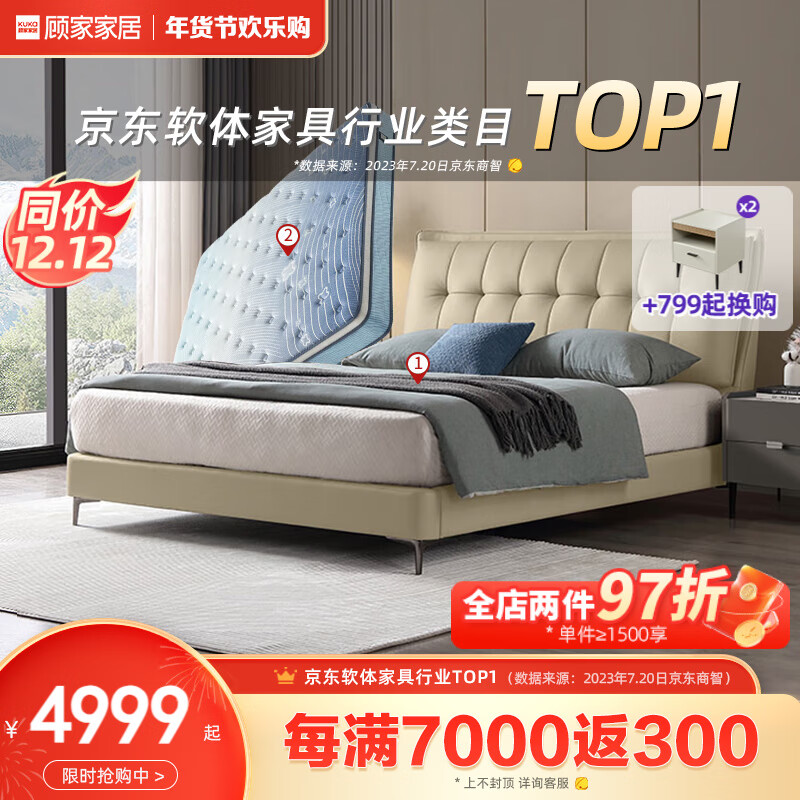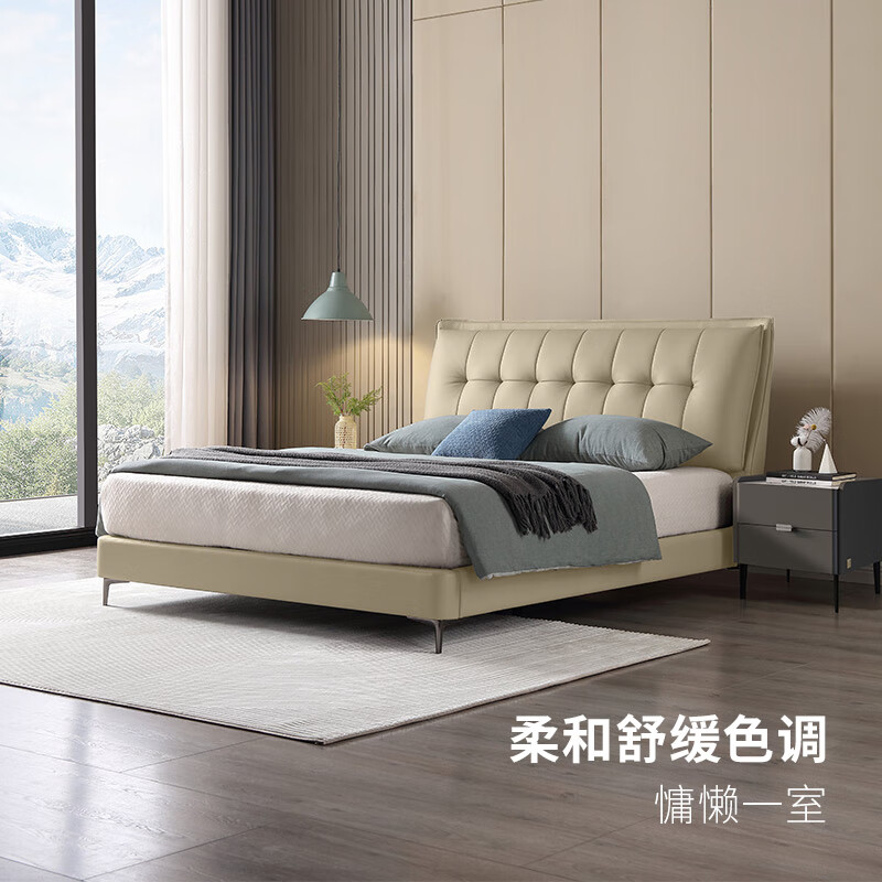 顾家家居(KUKA)皮床面包式靠包双人床皮床DS8039B【馥芮白】+M0099B 1.8米年后批发货价格:4999.00元!
