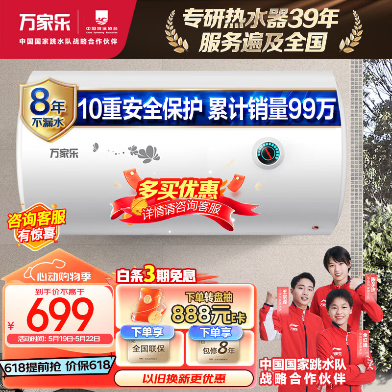 万家乐 80升家用电热水器 2100W速热 加长防电墙 经济节能下潜加热 抗腐耐用小巧易操控D80-H111B价格:699.00元!