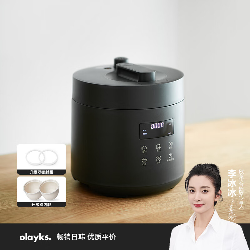 欧莱克(olayks) 电锅小型2.5L电高压锅1-3人多功能菜单智能调压高压焖煮开盖收汁不粘内胆迷你电饭煲汤锅 【陶瓷釉球釜不粘双胆】岩黑 2.5L价格:339.00元!