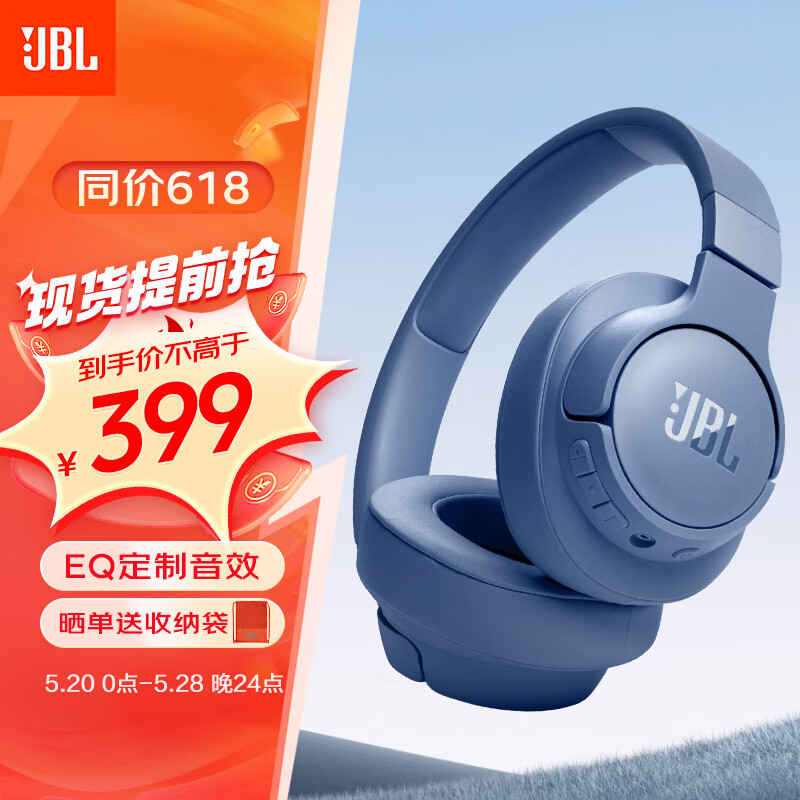 JBL TUNE 720BT 头戴式无线耳机 纯正低频音效 蓝牙5.3 免提通话 音乐游戏网课超长续航 深海蓝价格:449.00元!