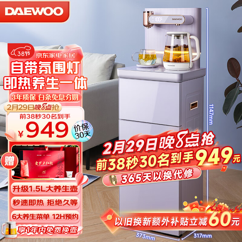 大宇(DAEWOO)茶吧机即热式饮水机家用全自动智能高端下置水桶速热泡茶机带养生壶多功能一体 DY-YSB01香芋紫价格:1299.00元!