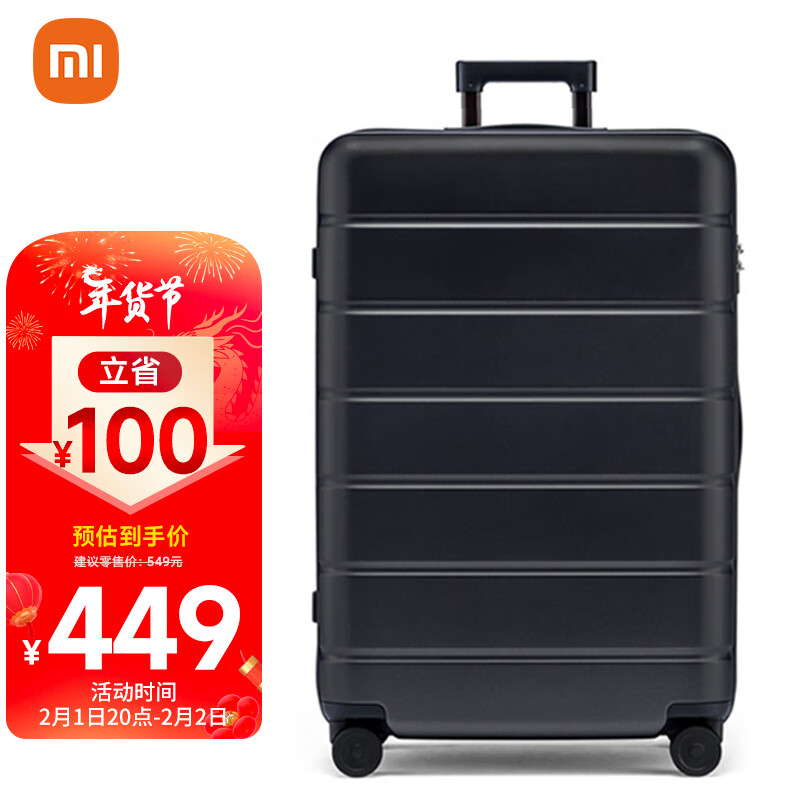 小米行李箱男大容量拉杆箱28英寸防刮耐磨旅行箱耐用女密码箱黑色价格:449.00元!