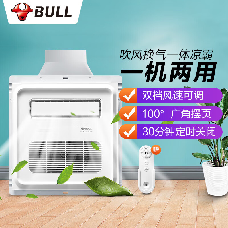 公牛(BULL)凉霸厨房卫生间GL02AYZ 【2档吹风换气 红外遥控定时关闭】价格:398.81元!