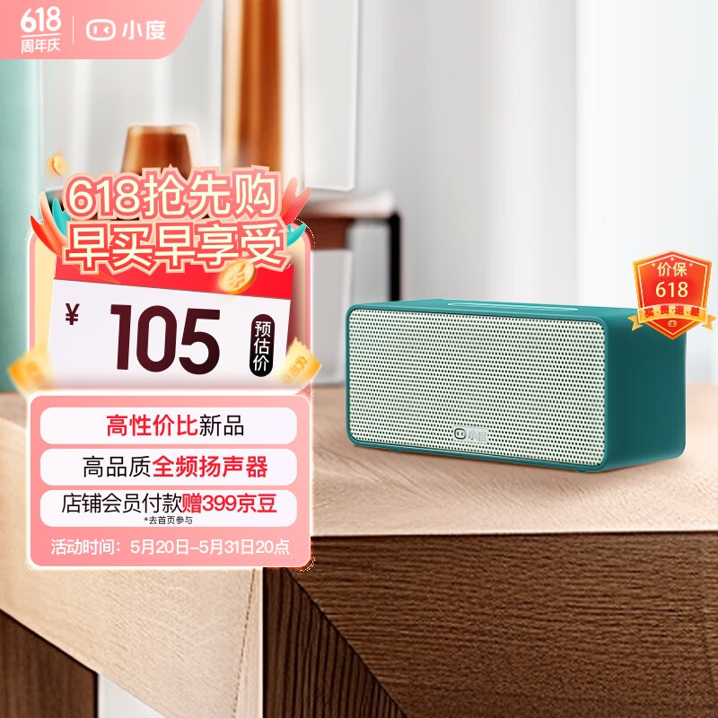 小度智能音箱 Xiaodu Sound 标准版 青黛典藏款 蓝牙电脑桌面音响 AI智能 闹钟早教机 老人小孩送礼价格:105.00元!