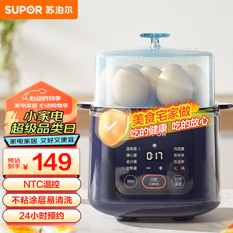 苏泊尔(SUPOR)煮蛋器 蒸蛋器 电蒸锅煮鸡蛋神器 微电脑预约可定时自动断电 家用蒸鸡蛋溏心蛋多用途锅 Z15FC856价格:139.00元!