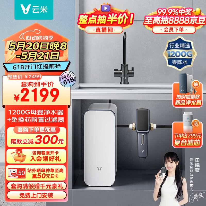 云米(VIOMI)Super Y 1200G全屋净水套装净水器+前置过滤器VF4两件套家用直饮净水器净水机价格:2299.00元!