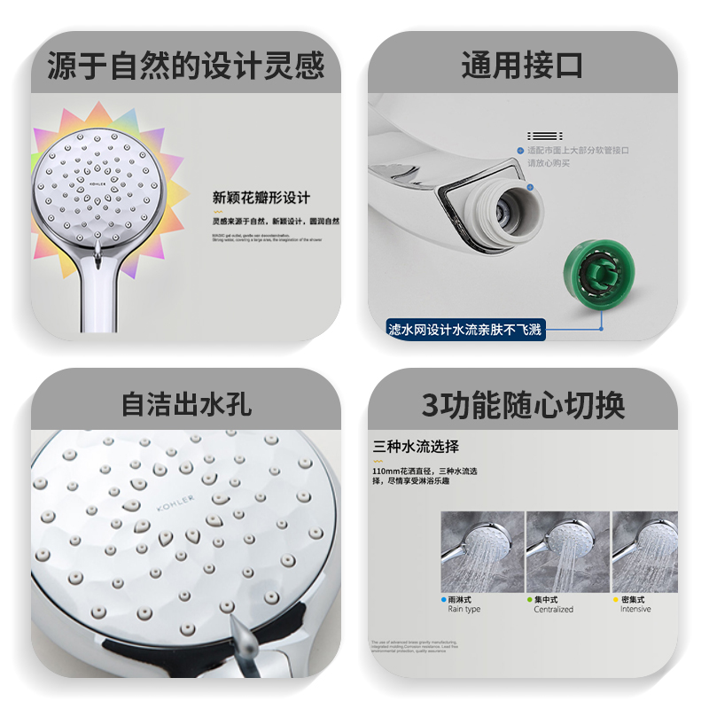 科勒(KOHLER)晨雨多功能流线型手持花洒喷头莲蓬头R72421T-CP价格:235.00元!