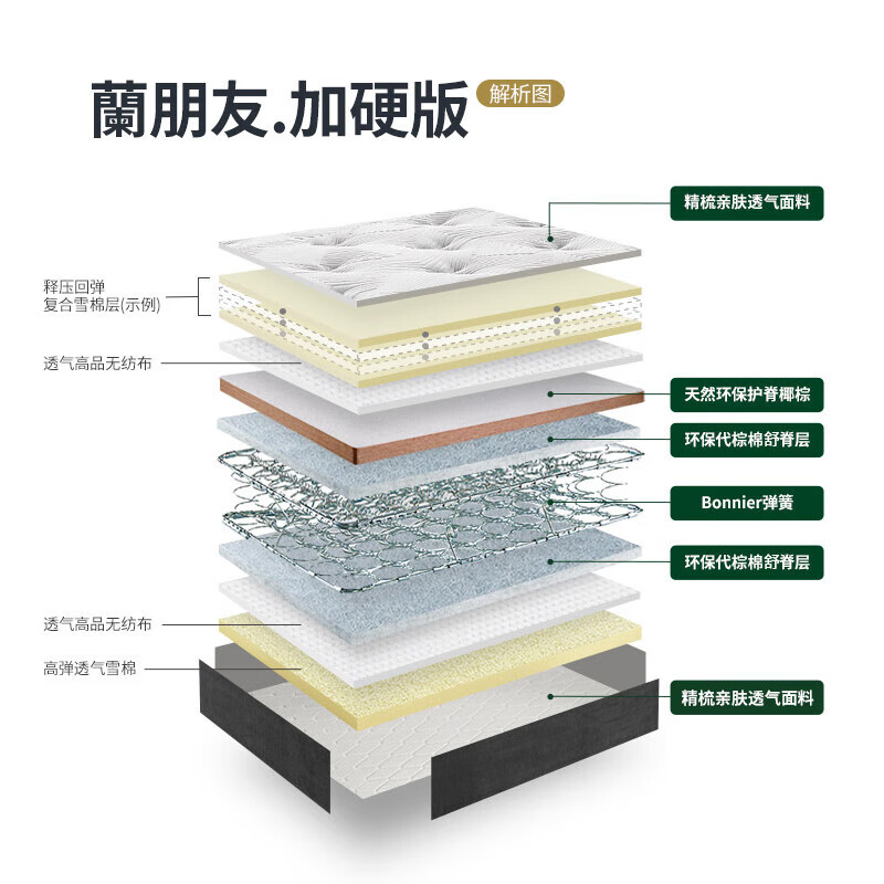 雅兰蘭朋友加硬版床垫配置参数: