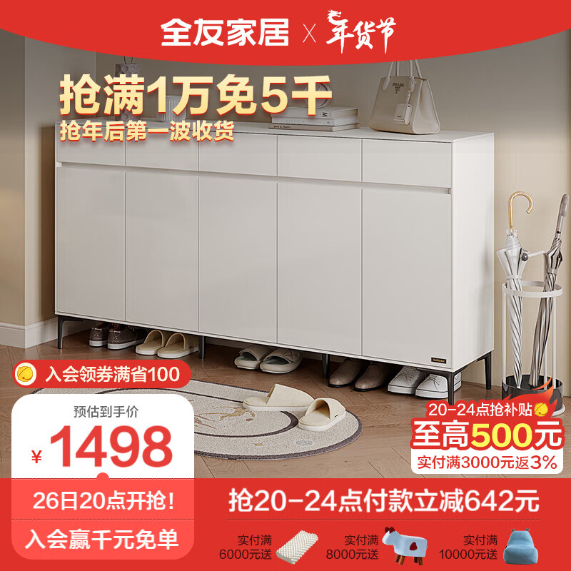 全友家居 简约五门鞋柜大容量多区储物可调节层板玄关柜置物柜126106价格:2140.00元!