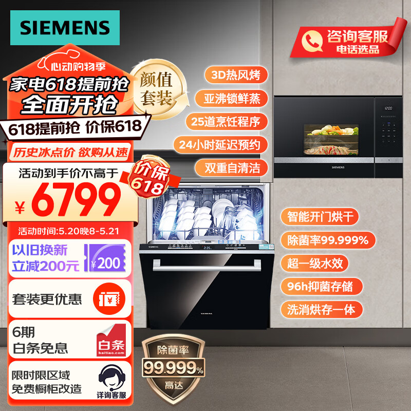 西门子14套大容量嵌入式家用洗碗机智能开门烘干 嵌入式微波炉组合套装 636Pro(含黑门板)+BE525价格:6799.00元!