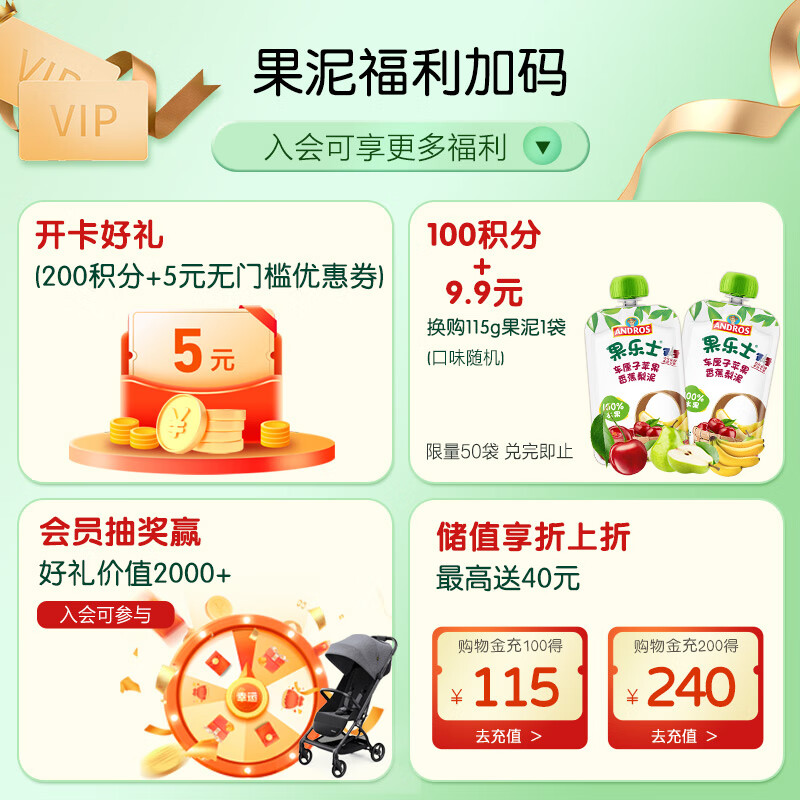 果乐士100%水果泥多口味囤货月套餐儿童辅养食宝宝休闲零食礼盒送礼20袋价格:247.50元!