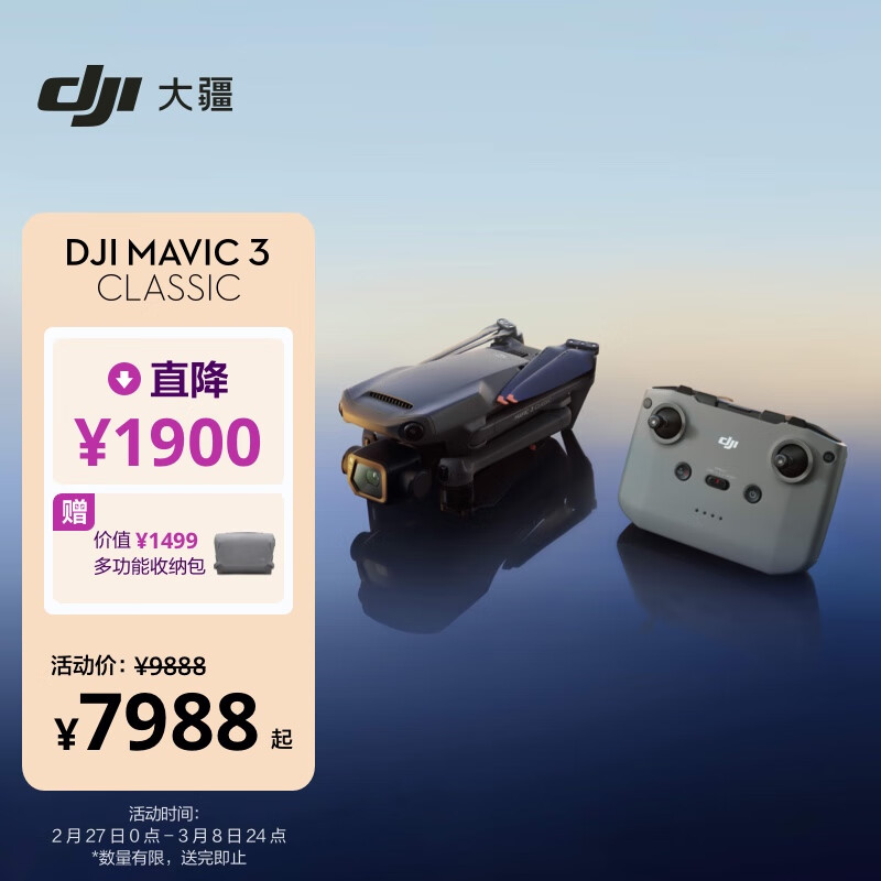 大疆 DJI Mavic 3 Classic (DJI RC-N1) 御3经典版航拍无人机 长续航遥控飞机+128G内存卡+随心换2年版价格:9665.90元!