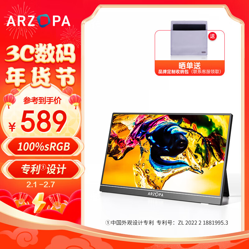 ARZOPA 16.1英寸100%sRGB 便携式显示器 IPS屏 电脑手机笔记本一线直连扩展屏 PS4/5 SWITCH显示副屏 A1C价格:709.00元!