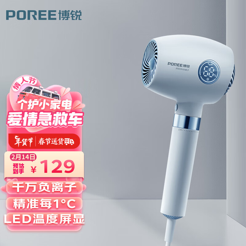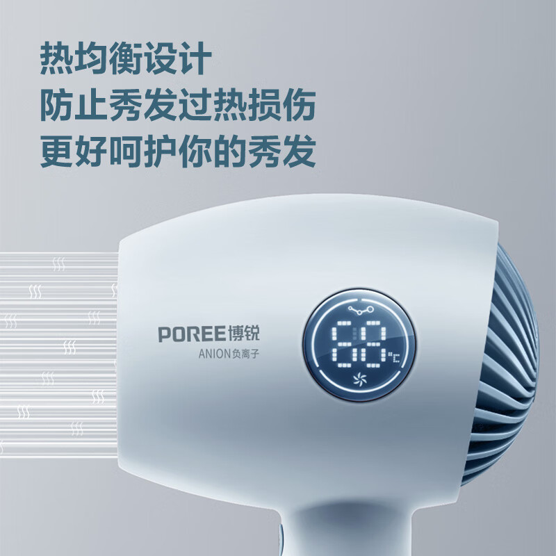 博锐电吹风机家用电吹风学生宿舍用吹风筒便携式速干护发冷热风负离子不伤发 LED温度显示PH1637价格:129.00元!