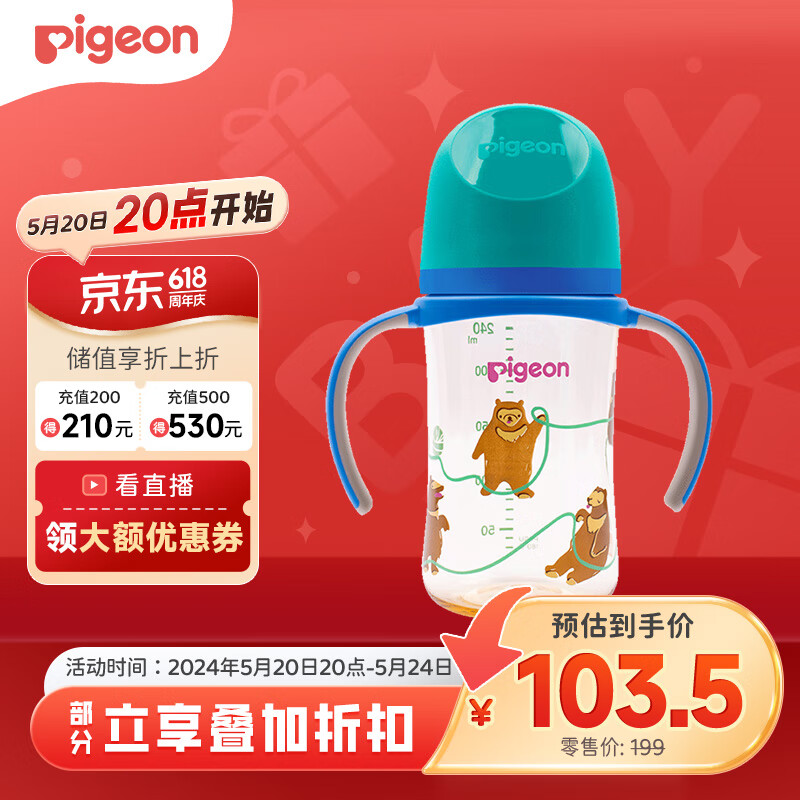 贝亲(Pigeon)双把手PPSU奶瓶 第3代奶瓶 240ml-马来熊 L号 6个月以上 AA220价格:114.90元!