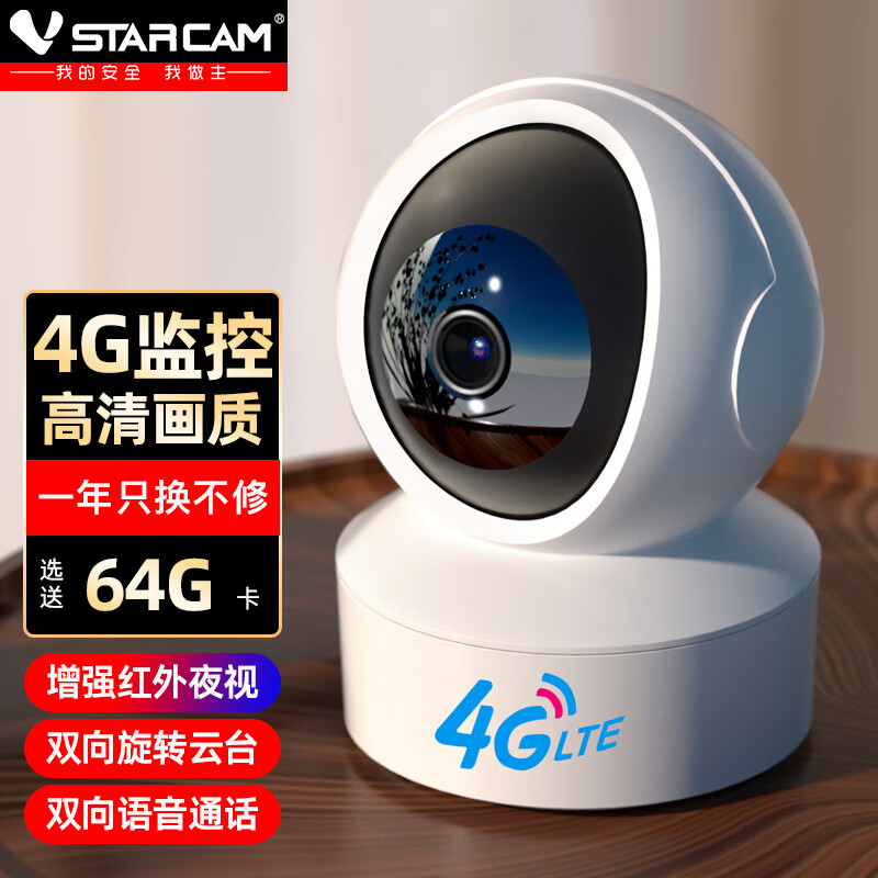 威视达康(VSTARCAM)家用室内监控无线摄像头无需连wifi网络4g监控器摄像头无网络可以远程360度无死角带夜视农村看护价格:169.00元!
