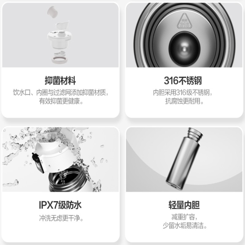 功能:防滑,蓝牙连接,直饮,控温,LED屏显