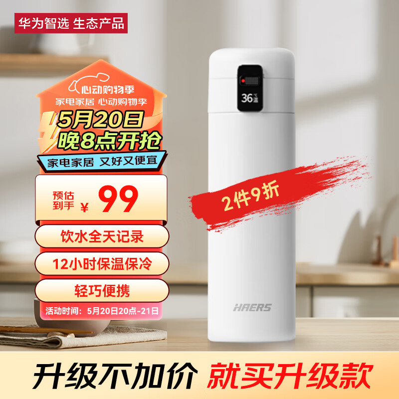华为智选哈尔斯智能弹盖保温杯男女士水杯杯子316不锈钢杯520礼物价格:99.00元!