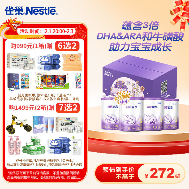 雀巢(Nestle)超启能恩 部分水解配方奶粉3段(12-36月)760g*4罐礼盒新国标价格:1088.00元!