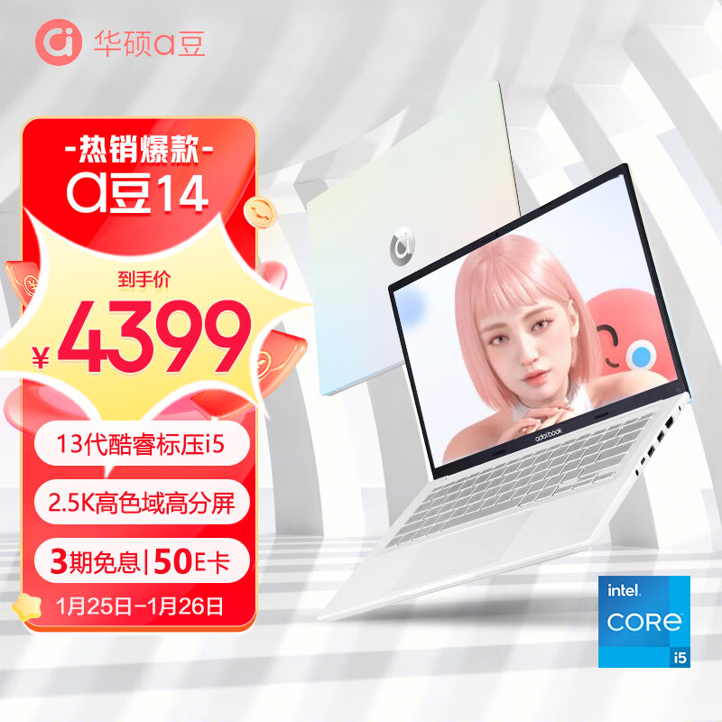 华硕a豆14 13代标压 高颜值轻薄本 笔记本电脑(i5-13500H 16G 512G 2.5K超清屏 AI降噪)商务办公学生价格:4399.00元!