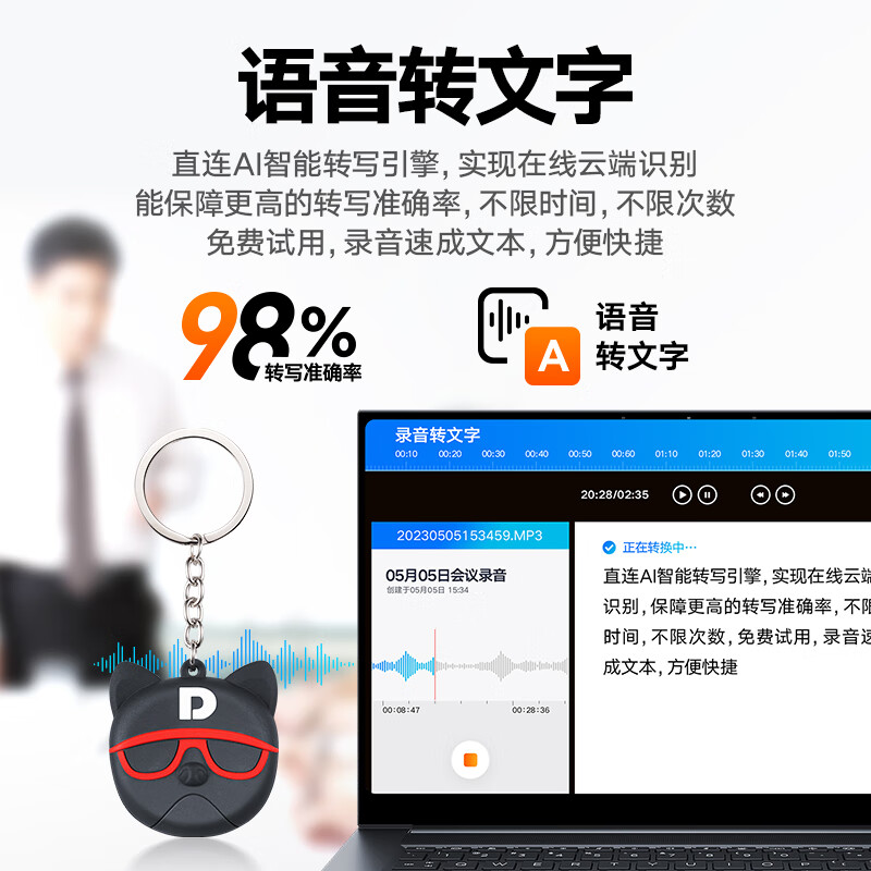 卡丁猫录音笔 黑球8G专业录音设备高清降噪便携式录音笔转换文字 商务办公学习超长录音神器价格:179.00元!